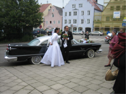 | Natürlich ist das auch das richtige Gefährt für ganz besondere Anlässe. So war das Auto im letzten Jahr eine würdige Hochzeitskutsche für unseren schönsten Tag. | ![]() |