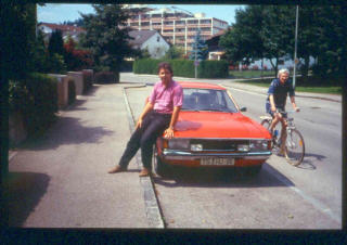 Hier noch ein Bild vom Oldtimertreffen in Mühldorf am Inn 2005: Die Überraschung ist groß, ein Granada in dem selben "Spanisch Rot" wie mein erster damals. Nichts wie hinterher, gleich daneben geparkt und erstmal die wunderbare Farbpalette der 70er Jahre genießen. |